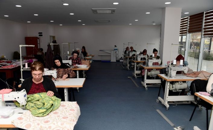Zamanının tümünü engelli çocuklarının bakımına ve eğitimine adadıklarını belirten kadınlar, dikiş kursunda hem üretiyor hem sosyalleşiyor. Kadınlar, el emeğiyle yaptıkları çanta, önlük, nevresim takımı, kırlent gibi ürünlerin kumaşlarının çoğunu eski kotlardan ve kullanılmayan kumaşlardan elde ederek geri dönüşüme katkı sunuyor.