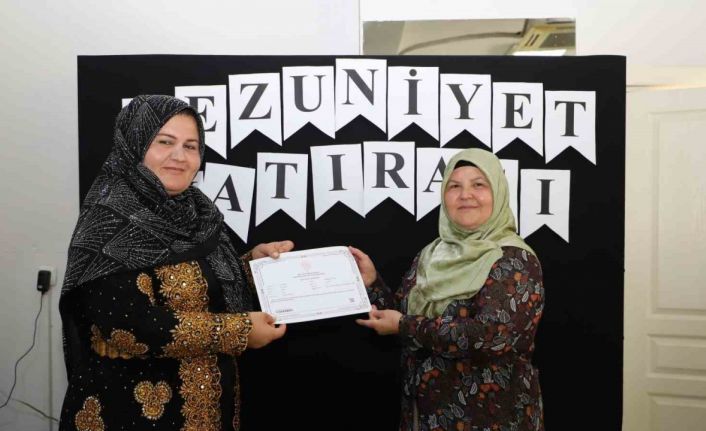 Mersin’in merkez ilçe Akdeniz Belediyesi Kültür ve Sosyal İşler Müdürlüğüne bağlı Çilek Mahallesi Kültür ve Sanat Evinde okuma ve yazma öğrenen 20 kursiyer kadın, birinci kademeden mezun olarak sertifikalarını törenle aldı.