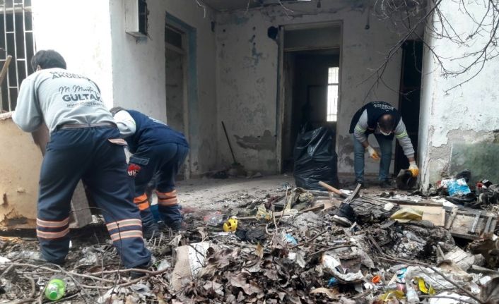 Yakınlarının yanına taşındığı öğrenilen yaşlı ve yatalak bir kadına ait olduğu tespit edilen terk edilmiş eve giden belediye ekipleri, evin içi ile bahçede tonlarca çöp ve evsel atık olduğunu tespit etti. Ekipler, evin içi ile bahçeden 4 traktör römorkundan fazla çöp toplayıp mahalleden çıkardı. Tonlarca çöpün toplanmasının ardından evin içi, bahçesi ve bulunduğu sokak dezenfektanlı su ile yıkandı.