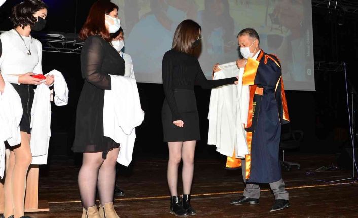 Müzik dinletisi sonrası, dönem 1 ve dönem 2 öğrencilerine beyaz önlükleri, Rektör Yardımcısı Yaşar, fakülte dekanları ve öğretim üyeleri tarafından giydirildi.