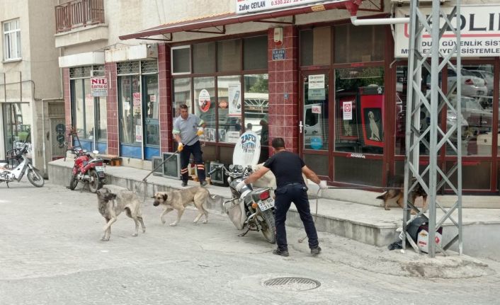 Mersin Büyükşehir Belediyesi Köpek Toplama ve Rehabilitasyon Merkezi’nden gelen görevliler, ilçe merkezindeki cadde ve sokaklarda vatandaşlara sıkıntı yaşatan sokak köpeklerini toplayıp Köpek Toplama ve Rehabilitasyon Merkezine götürdü.