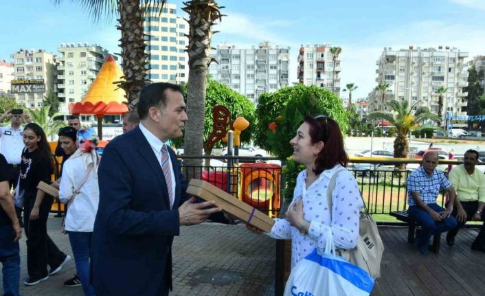 Yenişehir Belediye Başkanı Abdullah Özyiğit, 14 Mayıs Anneler Günü nedeniyle kadınlara lavanta hediye etti, günlerini kutladı.