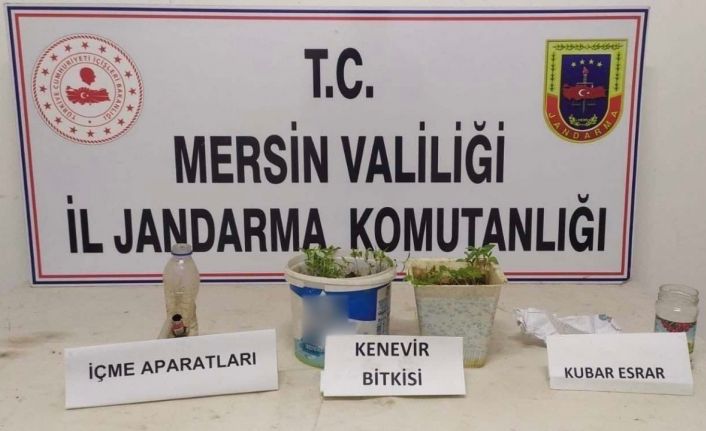 Yakalanan şüphelinin evinde arama yapan ekipler, 120 kök kenevir bitkisi, 130 gram kenevir tohumu, 15 gram kubar esrar ile 2 adet uyuşturucu kullanma aparatı ele geçirdi.
