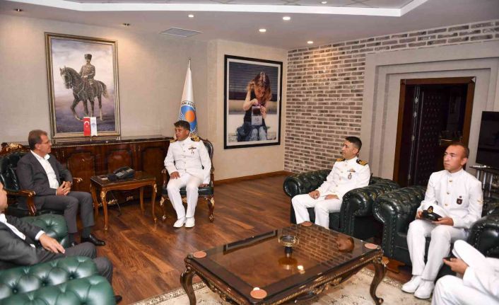 Mersin Büyükşehir Belediye Başkanı Vahap Seçer, Deniz Astsubay Meslek Yüksekokulu’nun 4-6 Ekim tarihleri arasında Mersin Askeri Limanı’nı ziyaretleri çerçevesinde, Eğitim Filotillası Komodoru Deniz Albay Volkan Salih Eser, Öğrenci Kafile Komutanı Deniz Yarbay Ahmet Bayrak ve beraberindeki öğrencileri makamında ağırladı.
