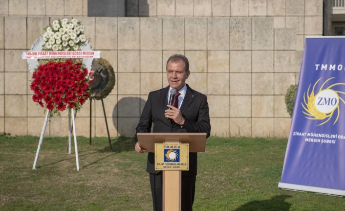 Törende, Ziraat Mühendisleri Odası Mersin Şube Başkanı Birim tarafından Atatürk Anıtına çelenk sunulmasının ardından saygı duruşu ve İstiklal Marşı okundu.
