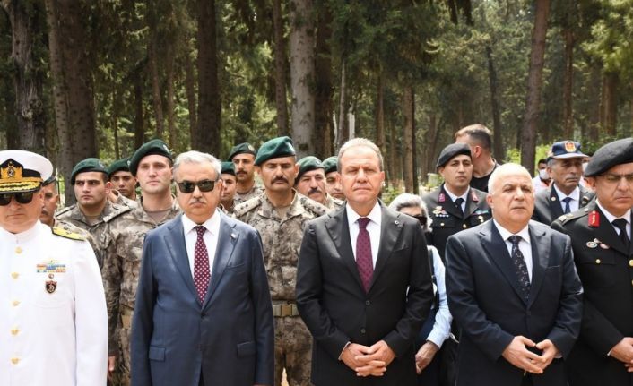Şehitlikteki törene, Mersin Valisi Su’nun yanı sıra, Akdeniz Bölge ve Garnizon Komutanı Tuğamiral Fuat Gedik, Büyükşehir Belediye Başkanı Vahap Seçer, askeri ve mülki erkan, sivil toplum kuruluş temsilcileri, şehit yakınları, gaziler ve çok sayıda vatandaş katıldı.