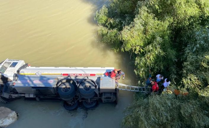 Tanker dereye yuvarlandı, sürücü yaralandı