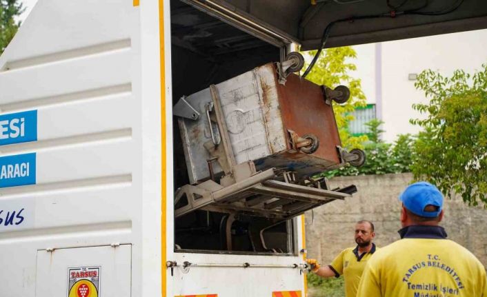 Tarsus Belediyesi Temizlik İşleri Müdürlüğü ekiplerince kent genelinde düzenli aralıklarla konteynerlere temizleme ve dezenfekte işlemi gerçekleştiriliyor.