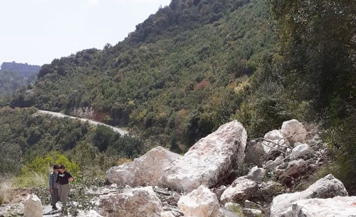 Mersin’in Tarsus ilçesine bağlı Yalamık Mahallesi sınırları içerisinden geçen yola heyelandan dolayı düşen ve yolun kapanmasına neden olan dev kayalar, Mersin Büyükşehir Belediyesi ekipleri tarafından kısa sürede kaldırıldı.