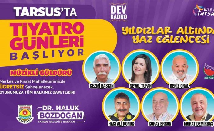 Birbirinden değerli oyuncuların ve Bizimkiler, Akasya Durağı, İkinci Bahar gibi birçok dizi, film ve tiyatroda oynayan Cezmi Baskın’ın yer aldığı "Yıldızlar Altında Yaz Eğlencesi " oyunu yaklaşık 1 ay boyunca çeşitli merkez ve kırsal mahallelerde ücretsiz sahnelenmek üzere başlayacak. Tarsus Belediyesi Kültür ve Sosyal İşler Müdürlüğü tarafından müzikli güldürü şeklinde bolca eğlencenin olduğu oyun Tarsuslularla bir araya gelecek. Cezmi Baskın, Seval Tufan, Deniz Oral, Hacı Ali Konuk, Koray Ergun ve Murat Demirbaş sahne alacak. Oyun ilk olarak 29 Temmuz Cumartesi günü saat 21.00’da Akşemsettin Mahallesi’nde başlayacak.