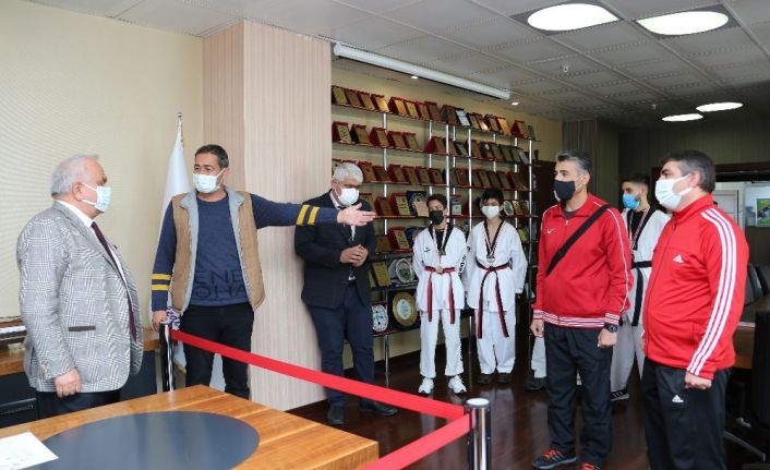 Taekwondo Dünya Şampiyonasına gidecek olan sporcular, Erdemli Belediye Başkanı Mükerrem Tollu’yu ziyaret etti.