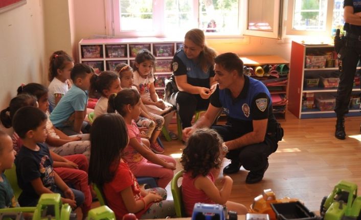 Mersin İl Emniyet Müdürlüğü’ne bağlı Toplum Destekli Polislik Şube Müdürlüğü ekipleri, ilkokul ve anasınıfları ziyaret ederek hem polislik mesleğini tanıttı hemde kumbara şeklinde tasarlanmış polis arabası, polis maskesi, boyama kitabı ve boya kalemlerini çocuklara hediye etti.