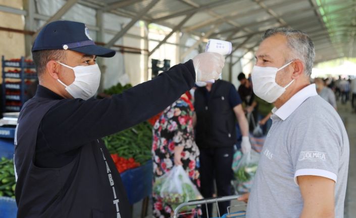 Toroslar Belediyesi, korona virüs önlemleri çerçevesinde, halkın sağlıklı ve güvenli bir şekilde alışveriş yapabilmeleri için semt pazarlarının girişlerinde vatandaşların ateşlerini ölçüp, maske dağıtarak önlem alıyor.