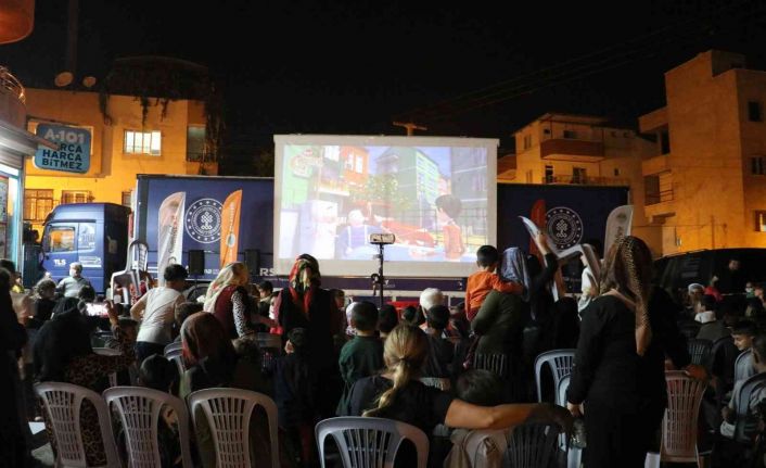 İçişleri Bakanlığı ile Kültür ve Turizm Bakanlığı’nın katkıları ile Türkiye turuna çıkan ’Gezen Sinema Tırı’, Toroslar Belediyesinin ev sahipliğinde çocuklara ve yetişkinlere açık havada sinema keyfi yaşattı.
