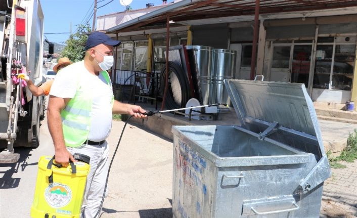 Belediyeden yapılan açıklamaya göre, ilçede, kontrollü sosyal hayat döneminde de temizlik faaliyetleri zamanında ve aksatılmadan planlı bir şekilde sürdürülüyor. Korona virüs salgınına karşı alınan tedbirler kapsamında ilçedeki tüm çöp konteynerleri tek tek yıkanarak dezenfekte edilirken, görüntü kirliliği ve kötü kokunun oluşumunun engellenmesinin yanı sıra sinek ve haşere oluşumunun da önüne geçilmiş olunuyor. Konteynerler, yıkama ve dezenfeksiyon işleminin ardından ilaçlanıp steril hale getiriliyor.