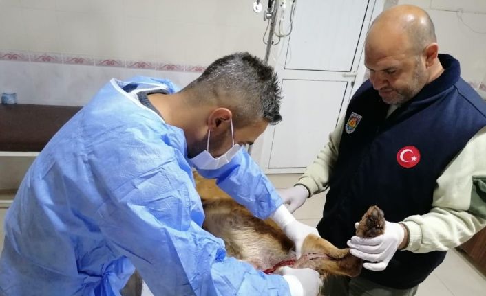 Tüfekle yaralanan köpek, belediye ekiplerince tedavi altına alındı
