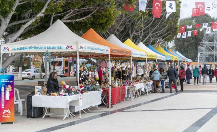 Mersin Büyükşehir Belediyesinin Özgecan Aslan Barış Meydanında 25 Aralık’ta kurduğu “Yılbaşı Üretici Kadın Stantları” 30 Aralık’a kadar açık kalacak. 60 stanttaki 126 kadın üreticinin ürünlerinin sergilendiği etkinlik yoğun ilgi görüyor.