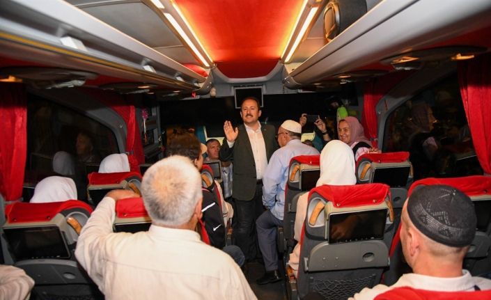 Vali Pehlivan ve beraberindekiler, hacı adaylarının aileleri ile birlikte, Müftü Yardımcısı Mahsum Taşçı’nın kafile başkanlığında hacca gidecek olan 137 hacı adayını uğurladı.