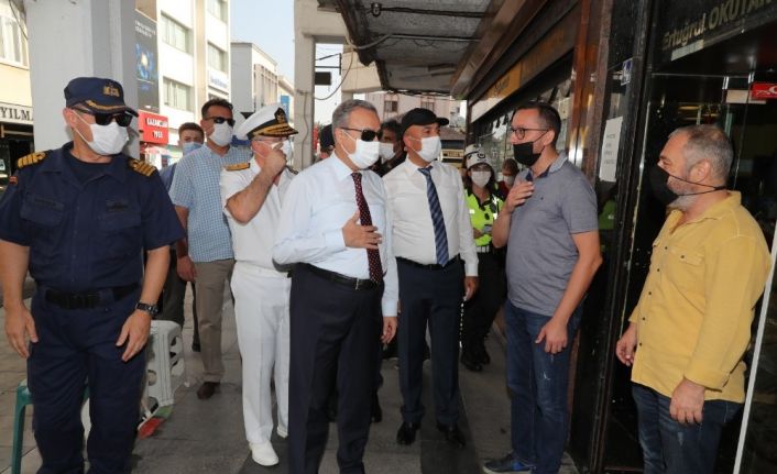 Mersin Valisi Ali İhsan, il protokolüyle birlikte esnafı ziyaret edip, toplu taşıma araçlarındaki denetimlere katıldı, vatandaşları maske, sosyal mesafe ve hijyen konusunda uyardı.