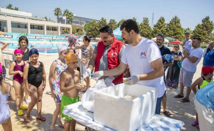 Mersin Büyükşehir Belediyesinin ‘Vahap Amca’yla Tatlı Günler’ projesi çerçevesinde, Macit Özcan Spor Tesislerinde yüzme kursu alan öğrencilere limonlu dondurma dağıtıldı. Yüzme kursu öğrencileri, Tarsus’un meşhur limon dondurmasıyla serinlemenin keyfini çıkardı.
