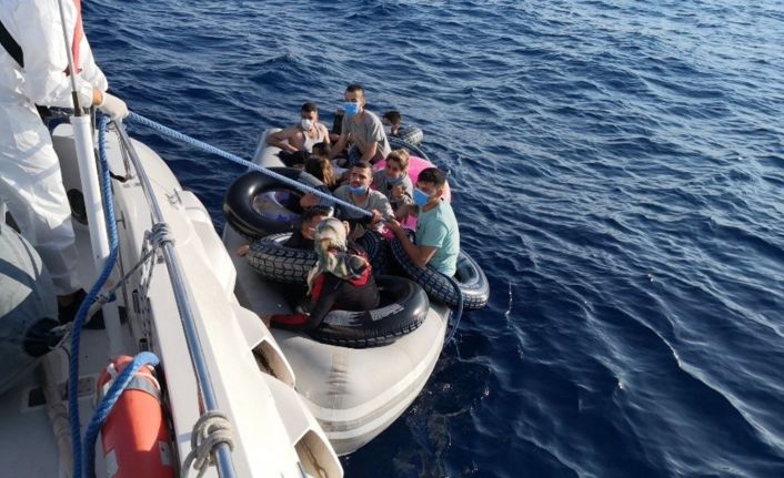 Muğla’nın Ortaca ilçesi açıklarında lastik bot içinde bulunan 14 düzensiz göçmen lastik botun arıza yapması sonucu sürüklenirken yaptıkları yardım çağrısı sonrası kurtarıldılar.