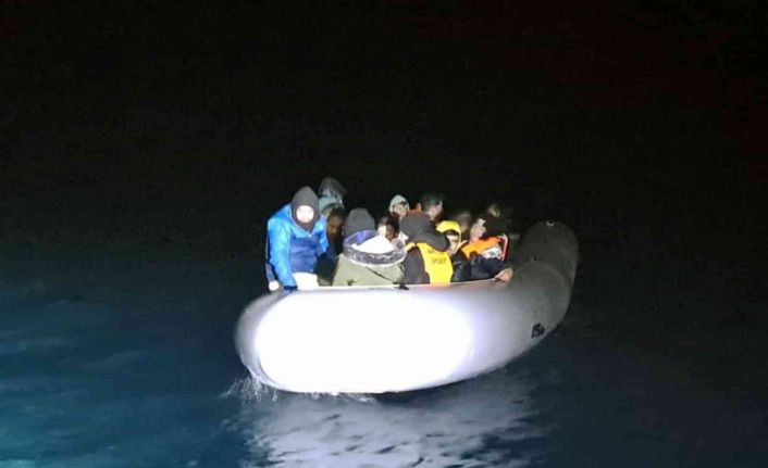 Muğla’nın Marmaris açıklarında lastik bot içinde yasa dışı geçiş yapmak isteyen 16 düzensiz göçmen akalandı.