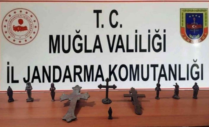 Menteşe ilçesinde elinde bulunan bronz heykelleri satmak için müşteri arayan şahıs, Jandarmanın operasyonu ile yakalandı.