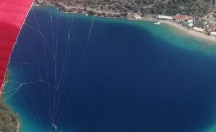 Muğla’nın Fethiye ilçesinde 23 Nisan Ulusal Egemenlik ve Çocuk Bayramı dolayısıyla yamaç paraşütü pilotları uçuş esnasında 1200 metre yükseklikte Türk Bayrağı açtı.