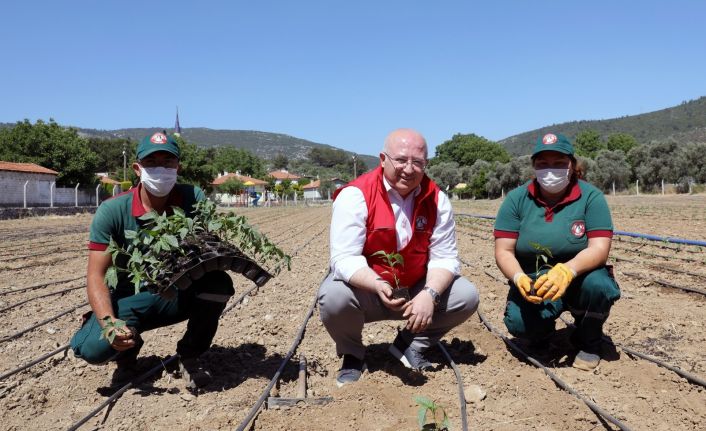 Koronavirüs (Covid-19) salgını tedbirleri kapsamında başlattığı yerli üretim çalışmaları ile ata tohumlarına sahip çıktıklarını ifade eden Menteşe Belediye Başkanı Bahattin Gümüş, işçilerle birlikte ata tohumundan üretilen yerli domates, biber, patlıcan, salatalık, yayla kavunu ve yayla karpuzu fidesinin dikim törenine katıldı.
