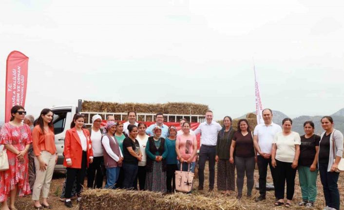 Tarım ve Orman İl Müdürü Barış Saylak yaptığı konuşmada, “20 yıldır hazinede olan arazimizi tekrar İl Müdürlüğüne kazandırarak burada üreticilerimiz için yem bitkisi yetiştirdik. 103 dekar alanda yetiştirilen tritikale ve lenox karışımı 2 bin ot balyasını il Müdürlüğümüz tarafından yürütülen ‘Kadın Dayanışması ile Koyun Yetiştiriciliği’ projesi çerçevesinde Milas ilçesinde destek alan 90 kadın üreticimize ve yangından zarar gören mahallelerimize dağıtıyoruz. Bu yıl verim bahar yağmurlarıyla güzel oldu. Yaklaşık 45 tona yakın ürün elde ettik ve tamamını sizlere dağıtıyoruz. Biz destek vermeye devam edeceğiz, sizler üretmeye. Çünkü üretmek dışında başka şansımız yok” dedi.