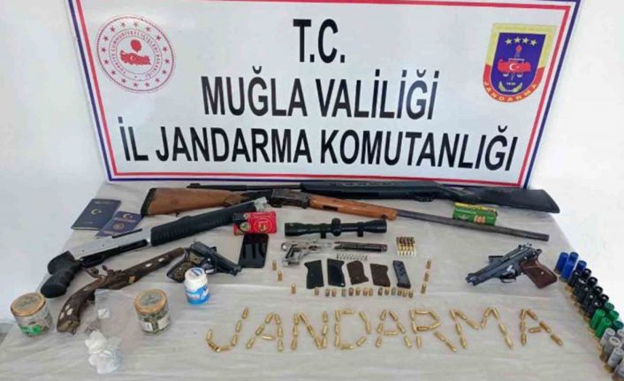 Muğla İl Jandarma Komutanlığı İstihbarat Şube Müdürlüğü ve Dalaman İlçe Jandarma Komutanlığı ekiplerince şüphelilerin vlerinde arama yapıldı. Yapılan aramada; iki tabanca ve tabancalara ait şarjörler, antik döneme ait tabanca, 2 ruhsatsız av tüfeği, ruhsatsız havalı tüfek, tabanca üst kapağı, kabze, namlu ve parçaları, silah üstü dürbün, 68 adet tabanca fişeği, 25 adet tabanca fişeği, 14 adet boş kovan, 26 adet av tüfeği fişeği, bir miktar skunk, kubar esrar ve kenevir tohumu ele geçirildi.
