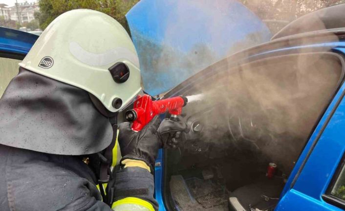 Aracın konsolunda başlayan yangın kısa sürede söndürüldü