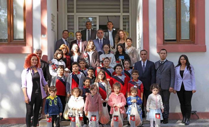Menteşe Belediyesi Başkanlık Binası önünde düzenlenen ödül töreninde öğrencilere futbol topu, basketbol topu, pazar filesi ve satranç takımları verildi.