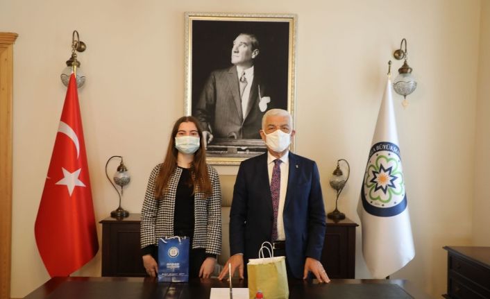Buca Belediyesi Kızılçullu Bilim ve Sanat Merkezi’nin düzenlediği Buca IMSEF (International Music, Science, Energy and Engineering Fair) Bilim ve Müzik Fuarı’nda iki ödül birden kazanarak Muğla’ya haklı bir gurur yaşatan Beyza Cengiz, Muğla Büyükşehir Belediye Başkanı Dr. Osman Gürün ile bir araya geldi. Proje danışmanı Mehmet Cengiz Onaran ve özel okulun kurucu genel müdürü Ferudun Öztürk’ün de katıldığı ziyarette Beyza Cengiz’in elde ettiği başarıya giden süreç konuşuldu.
