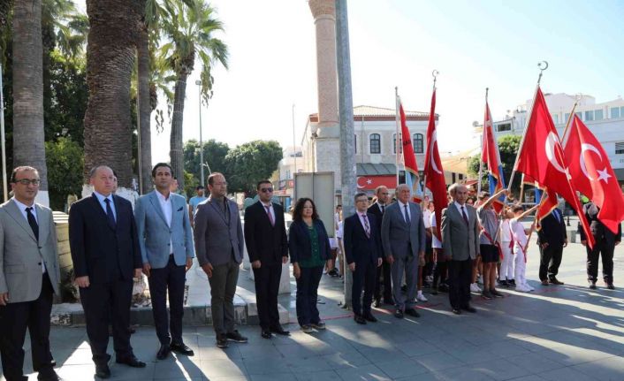 Sabah saatlerinde Bodrum Belediye Meydan’ında düzenlenen resmî törene; Bodrum Kaymakamı Bilgehan Bayar, Milletvekili Mehmet Yavuz Demir, İlçe Milli Eğitim Müdürü Bülent Aldal, Belediye Başkanı Ahmet Aras adına Başkan Yardımcısı Tayfun Yılmaz, öğretmen ve öğrenciler katıldı.