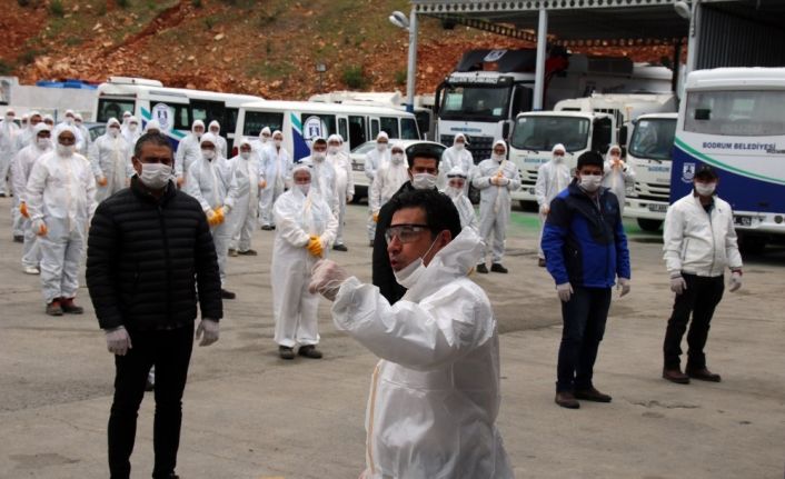 Dünya genelinde etkisini arttırarak devam eden Covid19 salgınını önleme kapsamında çalışmalarını aralıksız sürdüren Bodrum Belediyesi oto sanayi sitelerinde dezenfektasyon uygulaması yaparak çalışanlara maske ve solüsyon dağıttı.