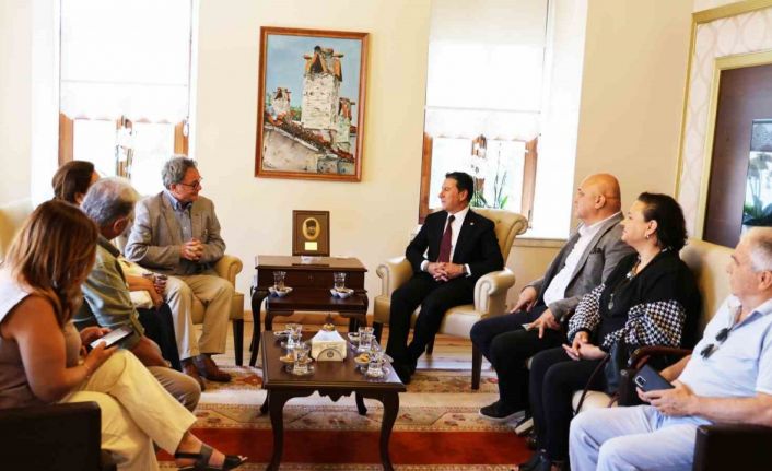 Nisyros Belediye Başkanı Prof. Dr. Christofis Koroneos, eşi Kaliopi, danışmanı Samis Paizanoglu ve eşi Yatağan Belediye Başkanı Mesut Günay ile birlikte Muğla Büyükşehir Belediye Başkanı Ahmet Aras’ı nezaket ziyaretinde bulundu. Ziyarette konuşan Muğla Büyükşehir Belediye başkanı Aras, “Ben Yatağan ile Nisyros Belediyesi arasında bir ilişki olduğunu duymuştum. Bu ziyaret beni ziyadesi ile mutlu etti. Ben Bodrum Belediye Başkanı iken de kentler arasındaki ilişkiyi çok önemsiyordum. Şu anda özellikle komşularımız ile olan ilişkileri maksimum seviyeye çıkarmak istiyorum. Bu konuda Rodos’a da bir mektup yazmıştım. En kısa zamanda ziyaretim öncelikle Bölge Başkanları nezdindeki ilişkileri tesis edeceğim. Çünkü kentlerin ilişkilerine ve diplomasisine çok önem veriyorum. Şu anda tüm dünyada 70 tane ülkeye ilişkileri güçlendirmek için mektup yazdım. Tabi ki özellikle bizim Yunanistan’a karşı farklı duygularımız var. Biz Mora Yarımadasından aile olarak Bodrum’a gelmişiz. Nasıl ki geleceğimiz için çalışıyorsak, geçmişimize de o kadar sahip çıkıyoruz. Bölgemiz Karia ve Likya uygarlıklarının yerleşim bölgesi. 110 antik kent barındırıyor burası” dedi.