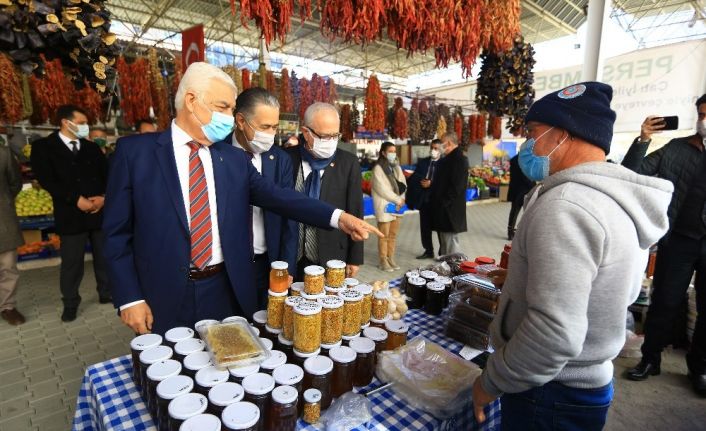 Kontrollü normalleşme sürecini sahada inceleyen Muğla Büyükşehir Belediye Başkanı Dr. Osman Gürün ve Menteşe Belediye Başkanı Bahattin Gümüş Perşembe günleri kurulan semt pazarını ziyaret etti.