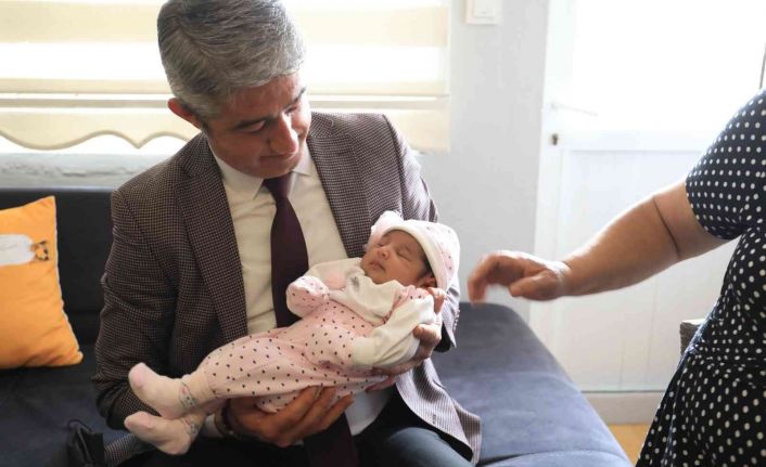 Marmaris Belediyesi Kültür ve Sosyal İşler Müdürlüğü tarafından yürütülen “Hoş Geldin Bebek” ziyaretlerine katılan Marmaris Belediye Başkanı Mehmet Oktay, minik Masal’ı kucağına alan Parlak ailesinin sevincini paylaştı.