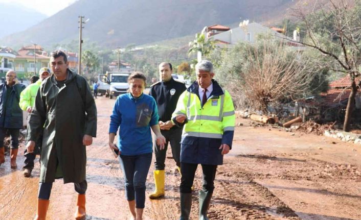 Yağmur özellikle İçmeler’de büyük sıkıntılar meydana getirdi. 2021 yılında yaşanan büyük yangında orman örtüsünü kaybeden mahallede yapılan incelemede yanan ağaçların kesilmesinin ardından kalan tomrukların suyla sürüklenerek dere ve kanalları tıkaması nedeniyle ev ve işyerlerinde su baskınları yaşandı. Marmaris Belediyesi ekipleri diğer kurumların ekipleriyle birlikte sıkıntı yaşanan her noktaya müdahale ederken Marmaris Belediye Başkanı Mehmet Oktay da çalışanlarla birlikte sahadaydı. Çalışmaları yerinde inceleyen Oktay vatandaşları da ziyaret ederek ev ve işyerlerindeki durumla ilgili bilgi aldı.