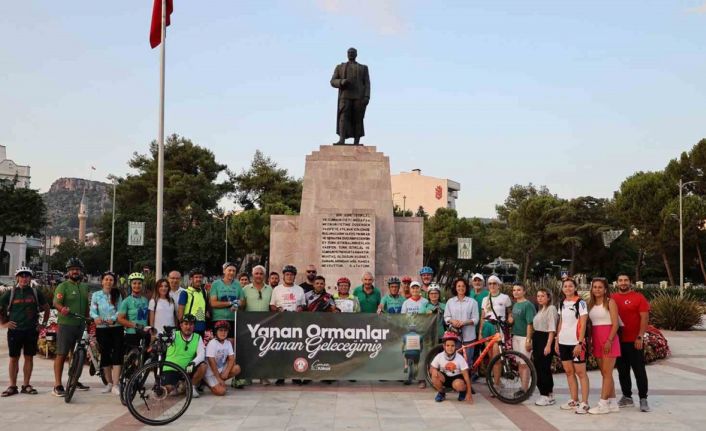 Bisikletçiler orman yangınlarına dikkat çekmek için pedalladı