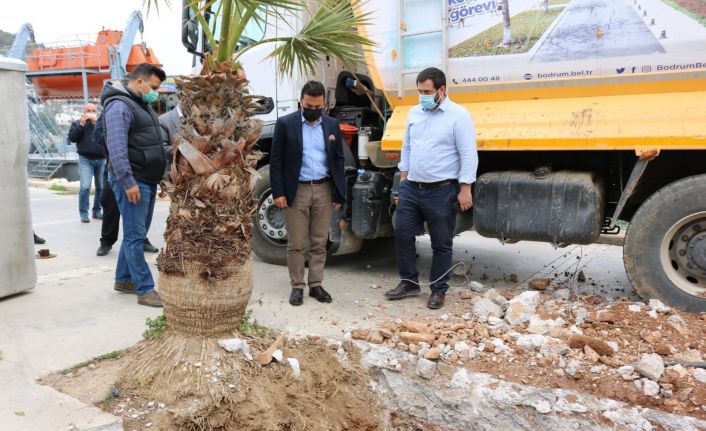 Bodrum Belediye Başkanı Ahmet Aras Kumbahçe Mahallesi mevkiine yerleştirilen yer altı konteynırı için başlatılan çalışmaları başkan yardımcıları ve birim müdürleri ile birlikte yerinde inceledi.