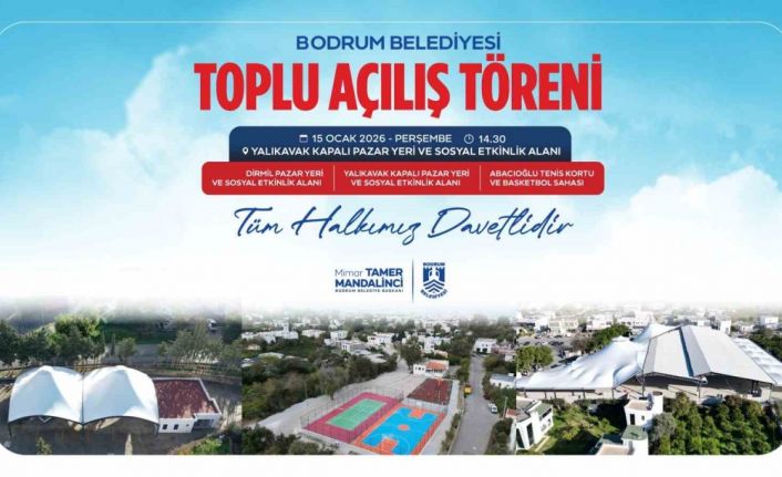 Yalıkavak Kapalı Pazar Yeri ve Sosyal Etkinlik Alanı, Dirmil Pazar Yeri ve Sosyal Etkinlik Alanı ile Abacıoğlu Tenis Kortu ve Basketbol Sahası, düzenlenecek törenle vatandaşların hizmetine sunulacak. Toplu açılış töreni; Cumhuriyet Halk Partisi Yerel Yönetimler ve Dirençli Kentlerden Sorumlu Genel Başkan Yardımcısı Gökan Zeybek ile Kıyı Ege Belediyeler Birliği Başkanı ve Muğla Büyükşehir Belediye Başkanı Ahmet Aras’ın katılımıyla gerçekleşecek. Tören, 15 Ocak Perşembe günü saat 14.30’da Yalıkavak Kapalı Pazar Yeri ve Sosyal Etkinlik Alanı’nda yapılacak.