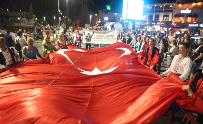 Bodrum sokaklarını şenlendiren yürüyüşün ardından Bodrum Kalesi’ne geçildi. İstiklal Marşı ve saygı duruşunun ardından gruplar ülkelerinin halk danslarını sergiledi. Çok sayıda kişinin izlediği etkinlikte gösteriler beğeni topladı.