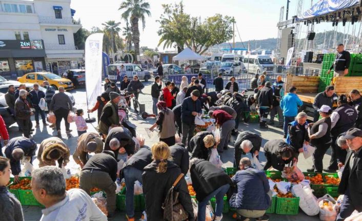 “Üreticimizden Alıyoruz, Halkımızla Buluşturuyoruz Projesi” kapsamında Bodrum mandalin dağıtımı Bodrum Belediye Meydanı’nda devam etti.