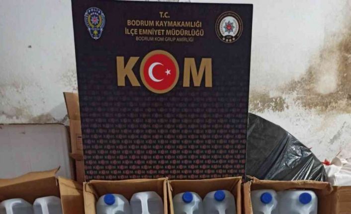 Muğla’nın Bodrum ilçesinde KOM ekiplerince yapılan operasyonda 235 litre etil alkol ele geçirildi.