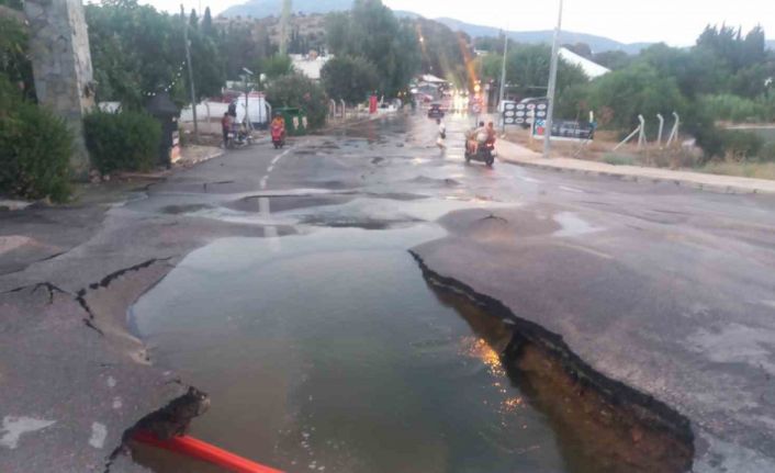 Muğla’nın Bodrum ilçesi Bitez Mahallesi’nde daha önce defalarca patlayan isale hattı, yeniden patladı. Cadde dereye döndü, bir restoranı su basarken o anlar güvenlik kamerasına yansıdı.