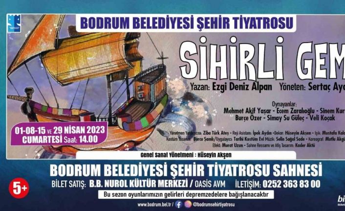 Bodrum Belediyesi Şehir Tiyatrosu, yeni çocuk oyunu Sihirli Gemi’nin prömiyerini 27 Mart Dünya Tiyatro Günü’nde Bodrum İlçe Milli Eğitim Müdürlüğü ile organize olarak ilçedeki ilköğretim çocukları ile yapıyor. Oyun, 1 Nisan Cumartesi’den itibaren, her cumartesi saat 14.00’te minik seyircilerini bekliyor olacak.