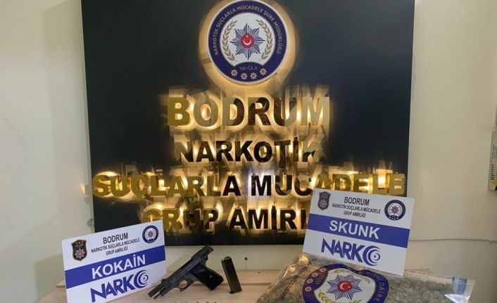 Edinilen bilgiye göre, Bodrum Kaçakçılık ve Organize Suçlarla Mücadele Grup Amirliği (KOM) ekipleri, Silah ve Uyuşturucu Madde Ticareti yaptıkları bilgisini aldıkları şahısları takibe aldı. Şahısların Bitez Mahallesi’nde kaldıkları apartları belirleyen ekipler, belirlenen adreslere Bodrum Cumhuriyet Başsavcılığı Koordinesinde eşzamanlı operasyon gerçekleştirdi. Operasyonda 7 adet ruhsatsız tabanca, 27 parça halinde daralı 795 gram skunk, daralı 102 gram toz esrar, 46 parça halinde daralı 65 gram kokain, 22 adet tabanca fişeği ve 35 adet kullanıma açık yabancı sim kart ele geçirildi.Bodrum’da silah kaçakçılarına operasyon