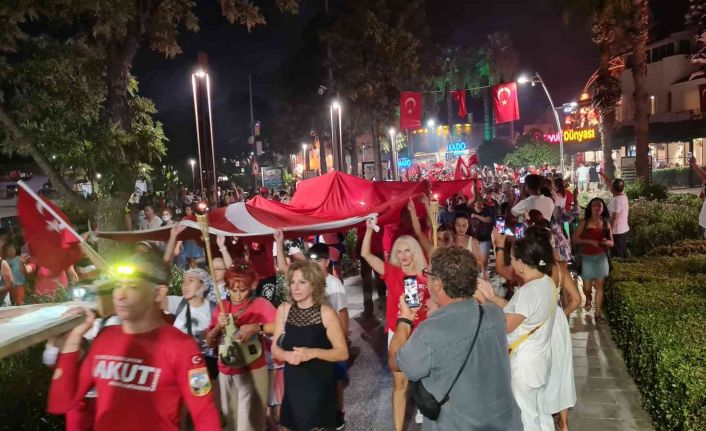 Korteje katılan Bodrum Kaymakamı Bilgehan Bayar ve Bodrum Belediye Başkanı Ahmet Aras da marşlar söyleyerek yürüdü.